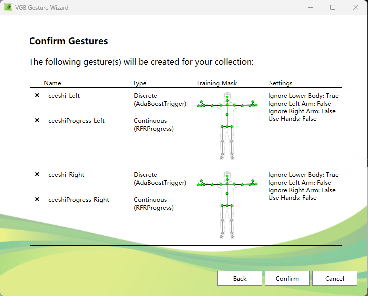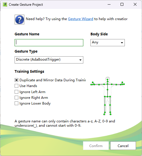 首先,设置姿势名称,就是你要识别的姿态,你不需要在名称中加入Left和Right,后面程序会提供更多选择,总之,输入一个名字就可以了。