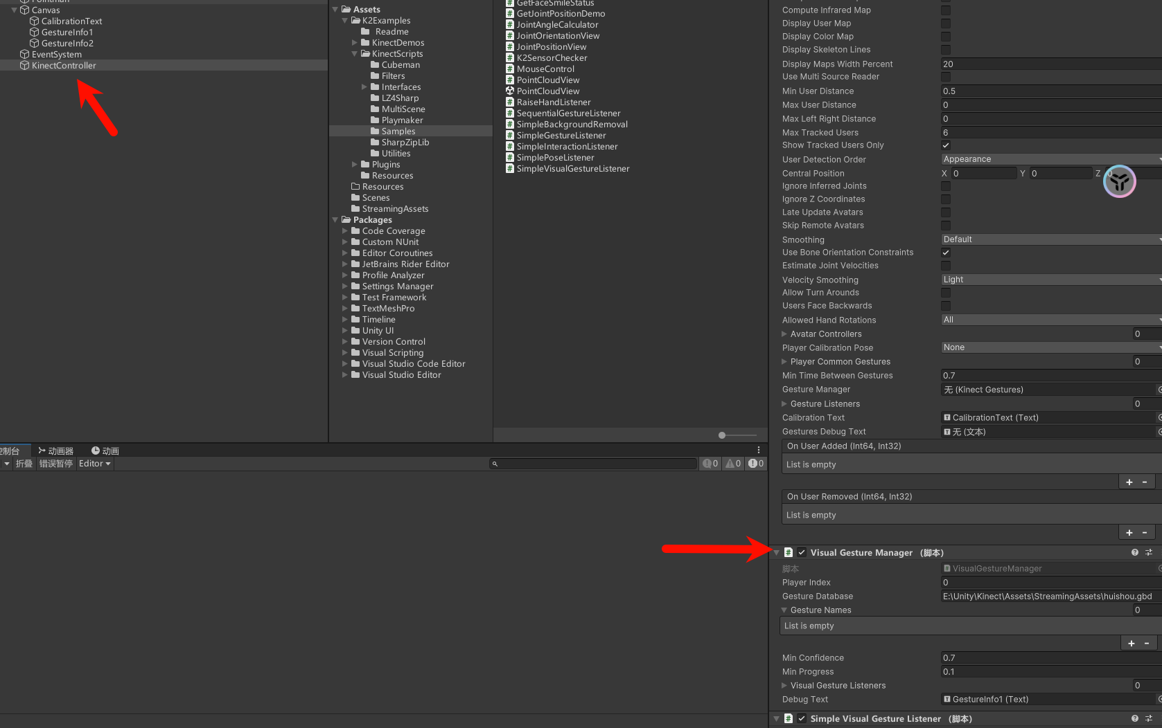 打开Unity,并导入Kinect v2 Examples with MS-SDK 插件,找到里面的案例Demo。可以去官方文档,得知每一个场景具体功能。GithubWiki