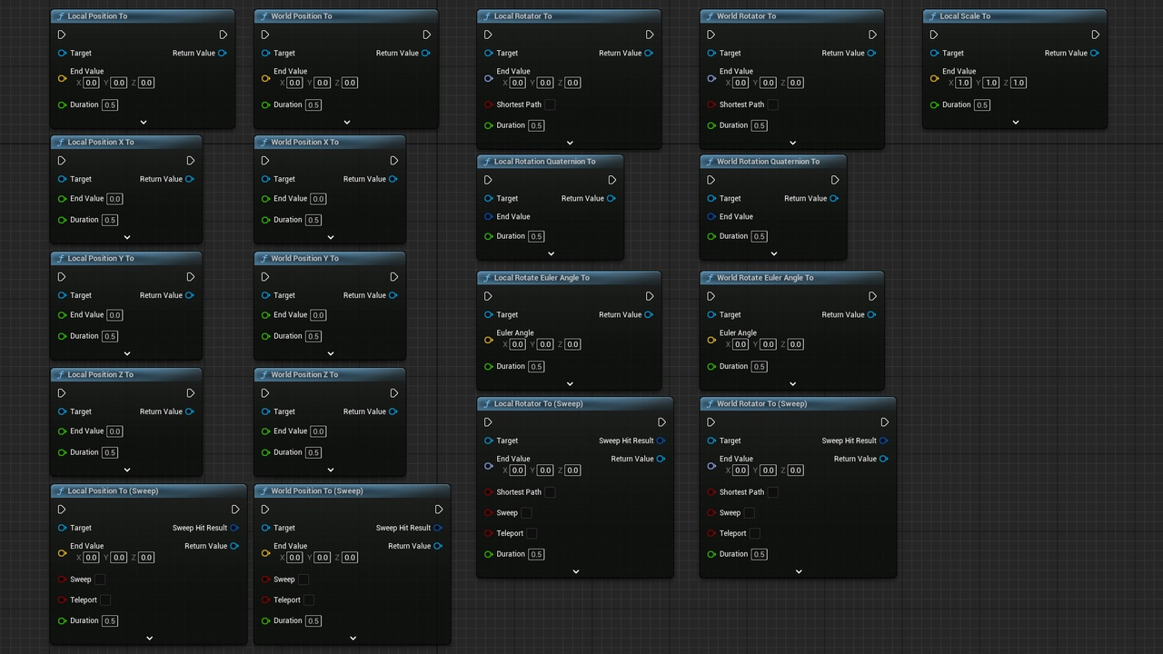 Sequence->Insert(this, 0.5f, ULTweenBPLibrary::LocalPositionYTo(Actor1->GetRootComponent(), 100, 1.0f));