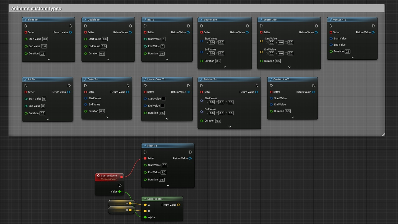 当创建一个新的补间时,动画将在TickingGroup:: DuringPhysics中执行,这也是Actor和ActorComponent的默认TickingGroup。可以为动画设置不同的更新时机模式。