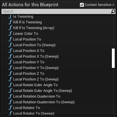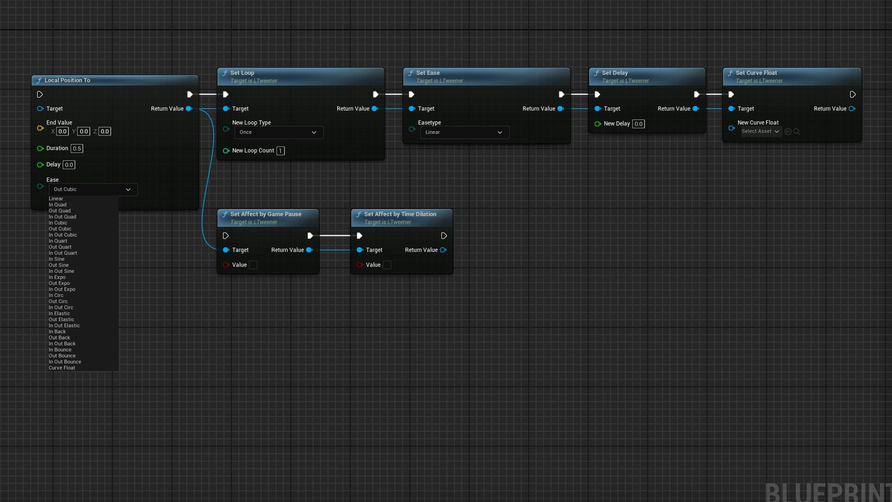 Sequence->Append(this, ULTweenBPLibrary::LocalPositionXTo(Actor1->GetRootComponent(), 100, 1.0f));