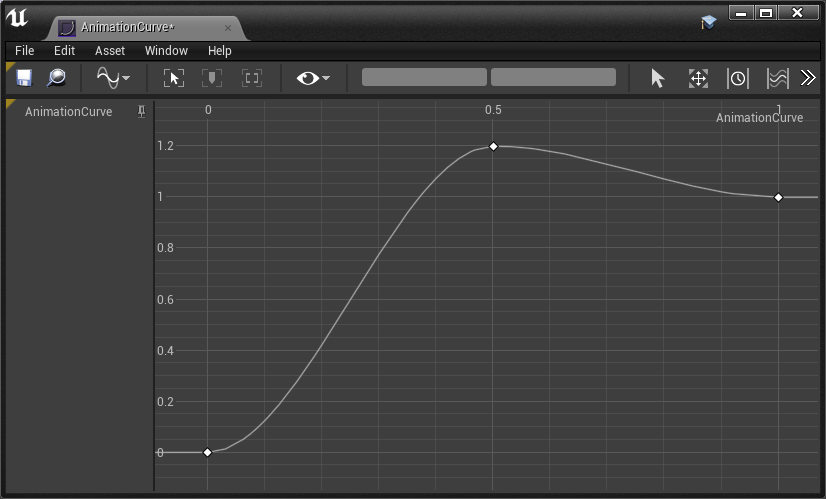 LTween 将使用 0 到 1 的水平范围作为开始和结束时间,请记住这一点,并将曲线制作成您想要的任何类型;然后在蓝图中设置本曲线。