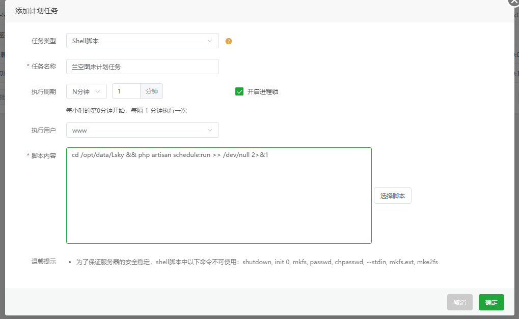 计划任务命令为下面的这串代码,即每分钟执行一次。前往宝塔面板的计划任务添加。