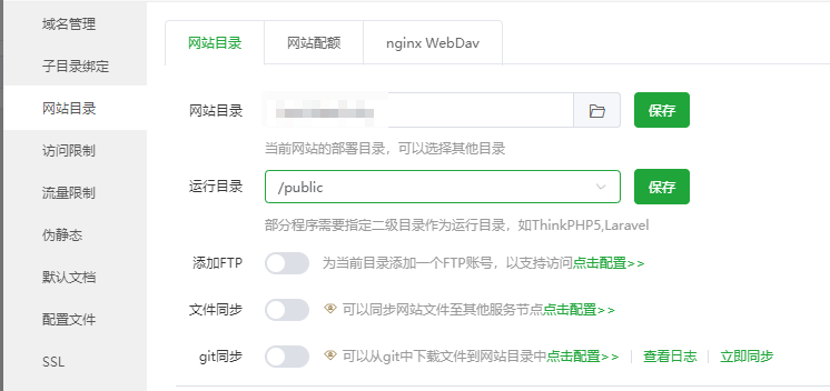 创建完成后,在网站设置里设置运行环境为/public