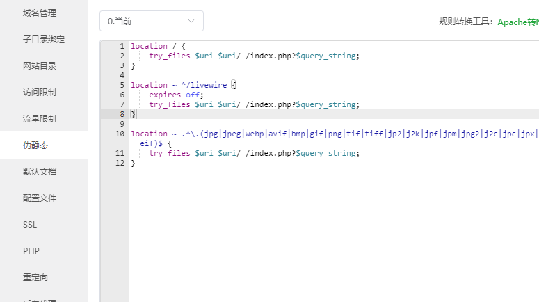 然后设置伪静态,代码如下